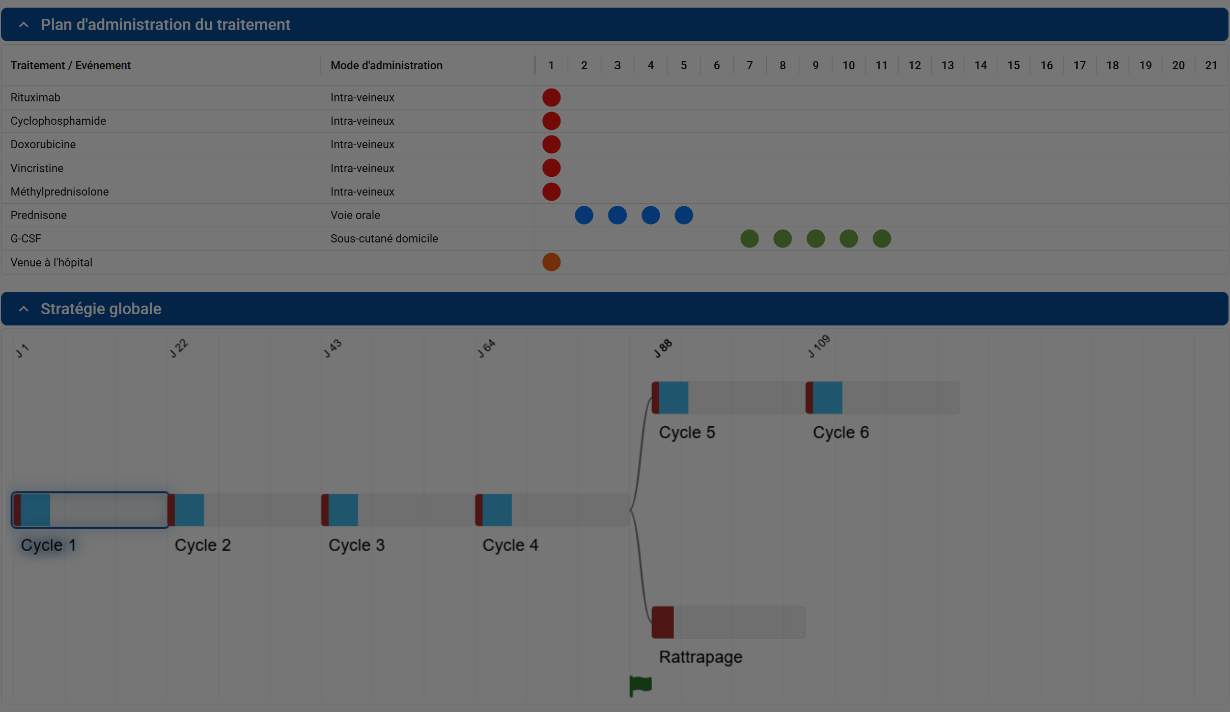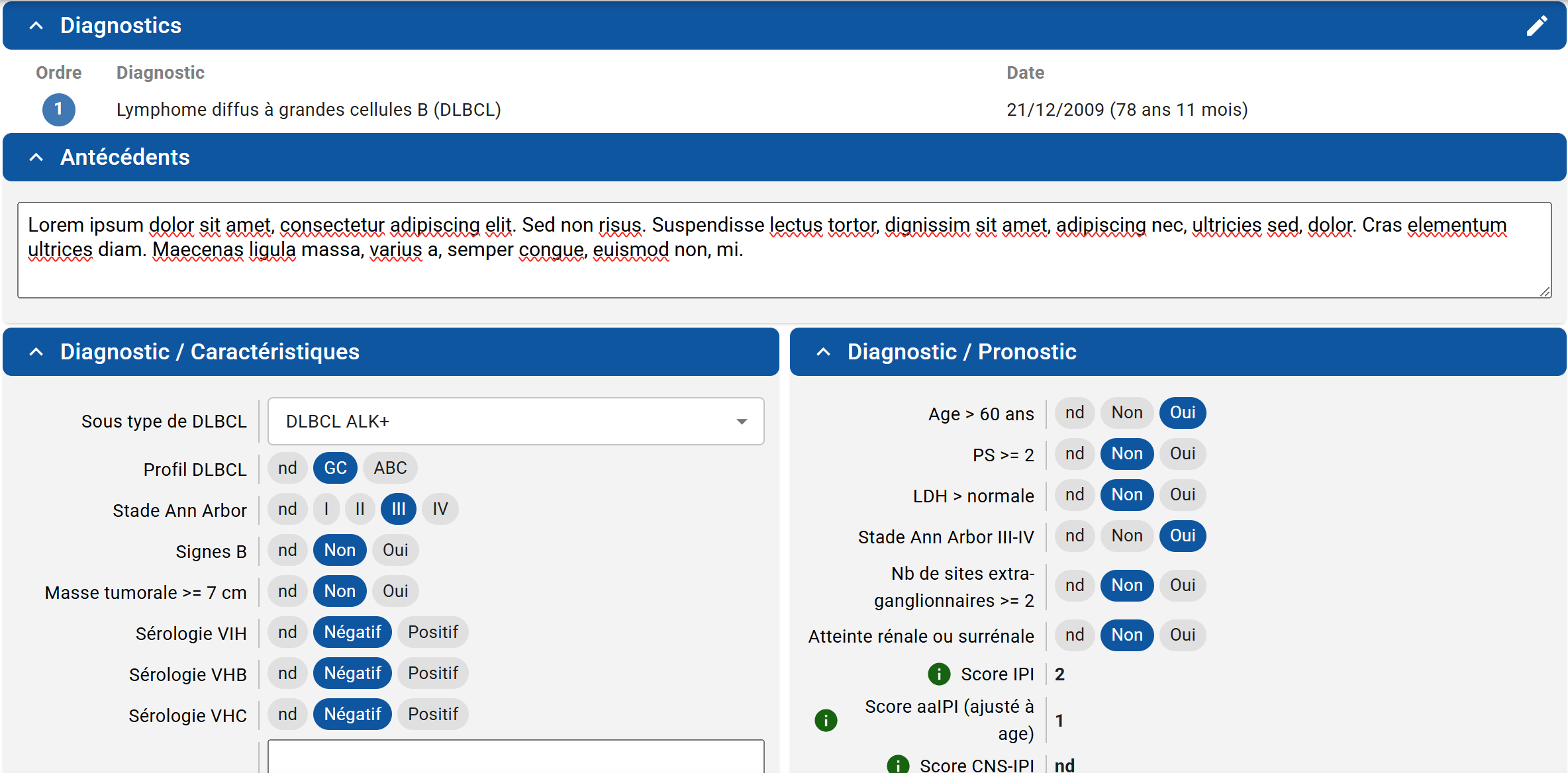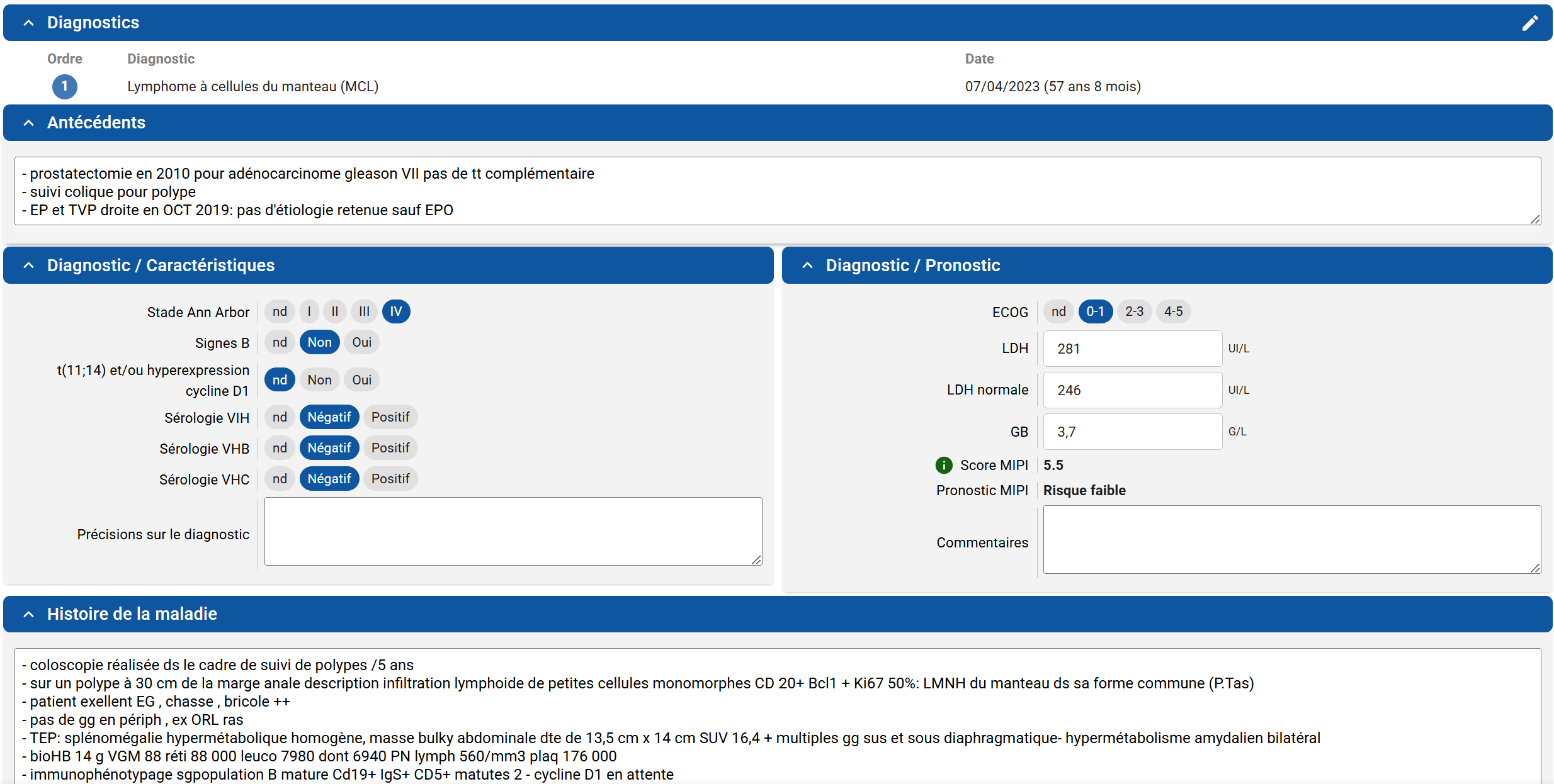 Oui. Au-delà des RCP standard, Hemsys intègre des RCP nationales spécialisées dans les histologies rares et complexes comme le PMBL ou la T-PLL. La plateforme propose plus de 100 fiches pathologies et plus de 500 variables spécifiques aux hémopathies malignes et bénignes, avec calcul automatique des scores pronostiques, garantissant une aide à la décision précise et adaptée aux cas les plus complexes.